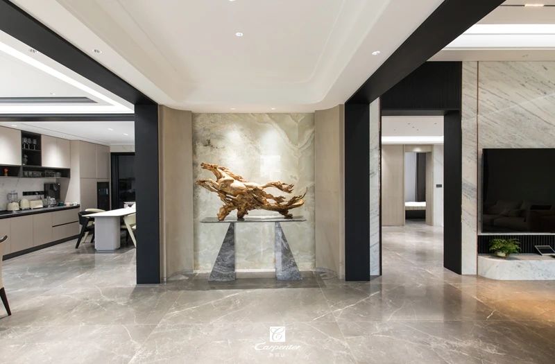 獨特的空間結構與多種形式相連接,不同元素碰撞,展現不規(guī)則中的秩序感,用色彩、紋理、配飾、光影等表達生活的味道。